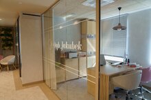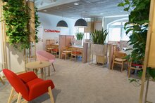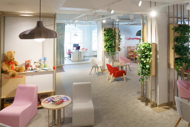 Wnętrze zostało zaprojektowane zgodnie z nowym standardem Banku Pekao, który stawia na otwartość, przejrzystość i komfort użytkowania. Przestrzeń została podzielona tak, aby ułatwiać różne formy kontaktu – znajdują się tu zarówno miejsca do rozmów z doradcą, krótkiej obsługi, jak również nowoczesna strefa samoobsługowa, umożliwiająca szybką i wygodną realizację podstawowych operacji bankowych. Ponadto, z myślą o rodzinach z dziećmi przygotowano przyjazny kącik dziecięcy, który uprzyjemnia najmłodszym czas spędzony w placówce. Projekt uwzględnia nie tylko potrzeby użytkowników, ale również kwestie środowiskowe – wykorzystano w nim materiały pochodzące z recyklingu, a całość utrzymano w estetyce zgodnej z aktualnymi trendami.